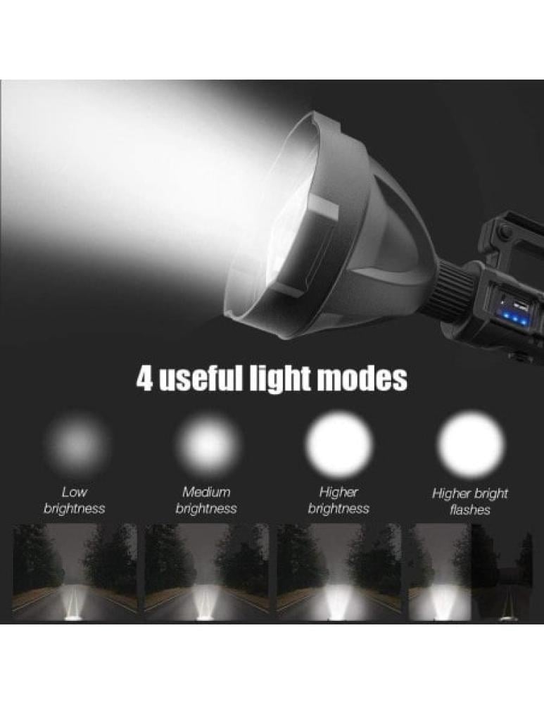 يتميز المصباح بمصباح LED عالي التيار يوفر ضوءًا قويًا ومشرقًا، مدعومًا ببطارية ليثيوم كبيرة السعة.